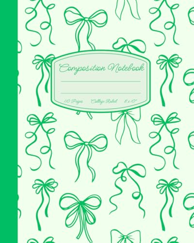 Super Cute Girly Pastel Green & Mint Bows Coquette Composition Notebook: College Ruled Aesthetic Cool Design; Preppy Lover Stuff; Back to School ... Teens, Office Woman; Perfect Gift for Girl
