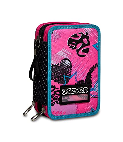 Seven Pencil case - Pen bag, multicolor, Box for Stationery, Pen Pouch filled with Pens, Markers & more, Perfect for School Supplies, for Teen Girls and Boys, 3 compartments, XXL GIRL