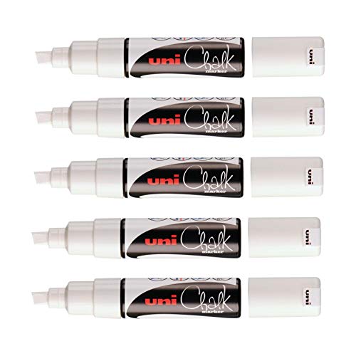 uni-ball – Uni Mitsubishi Pencil – kritmarkör PWE-8K – mångsidig – regnbeständig – perfekt för spegelglas/skifferbräda – stor fasad spets 8 mm – 5-pack – vit