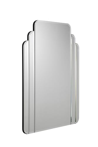 Croydex 700 x 500 mm Art Deco fasad badrumsspegel säkerhetsbaksida väggspegelglas, väggmonterad med beslag och fixeringar, idealisk sovrumsdekor, perfekt för alla rum