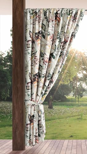 Eurofirany Garden utomhusgardiner med stångfickor – 1 st. Solskydd, insynsskydd, vindtäta, vattentäta, utomhusgardiner för paviljong terrass, pergola balkong, 155 x 200 cm, ljusbeige