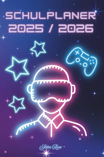 Schulplaner 2025/ 2026 - Gaming Neon Design für Schüler A5 Format: Mit Stundenplänen, Ferienkalender, Mathe Formeln, Periodensystem, Notenübersicht, Anti-Mobbing-Hilfe & kreativen Extra-Seiten