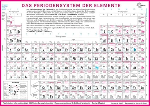 Das Periodensystem der Elemente: Technisches Informationsblatt. Verpackungseinheit - 20 Stück