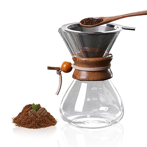 Tissting 400 ml manuell droppkaffebryggare (13,5 oz) med filter i rostfritt stål, kaffebryggare i glas, återanvändbart, permanent filter, komplett design, perfekt kaffebryggare