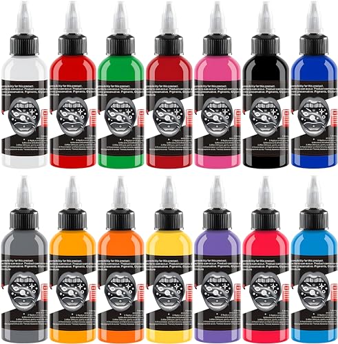 DLD 14 delar professionellt tatueringsbläckset (1 oz 30 ml/flaska) fullfärgs tatuering rent pigment bläck permanent tatuering tillbehör för mikroskulptur makeup skönhet kroppsmålningskonst.