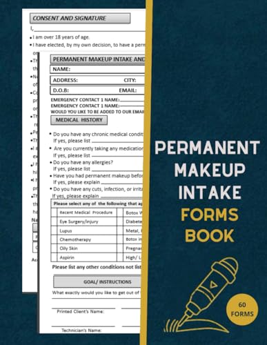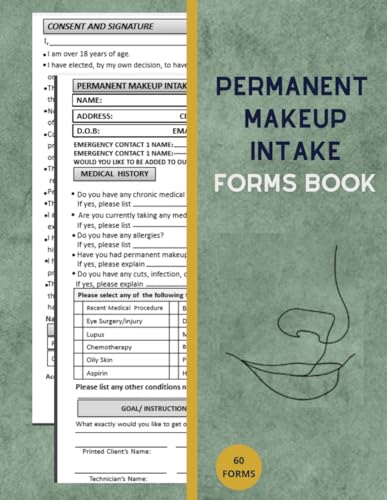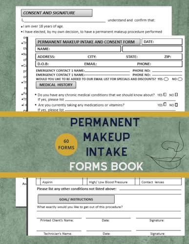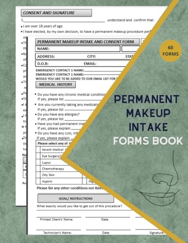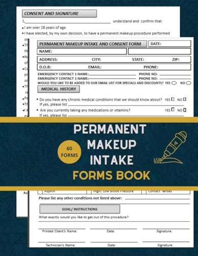 Permanent Makeup Intake Forms Book: 60 Consent and Consultation Forms.Track Customer Details, Medical History, Payments, Instructions and Consent . Intake Form For Esthetician..