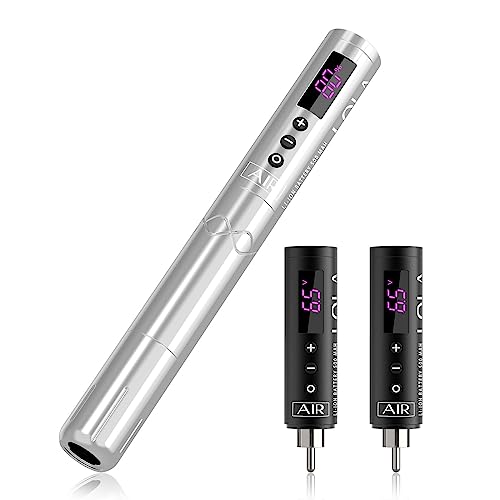 EZ Trådlös Tatuerings Maskin - Permanent Makeup Tatuerings Maskin med 3st Batterier Roterande Tatuerings Pistol för Nybörjare och Kvinnliga Tatuerare (LOLA AIR Silver)