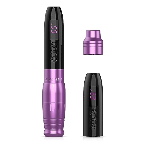 EZ Trådlös Tatuerings Maskin - 6 Strokes 2.0mm-3.3mm Permanent Makeup Tatuerings Maskin med Extra 1000mAh Batterikraft SMP Roterande Tatuerings Pistol (LOLA AIR PRO Lila)