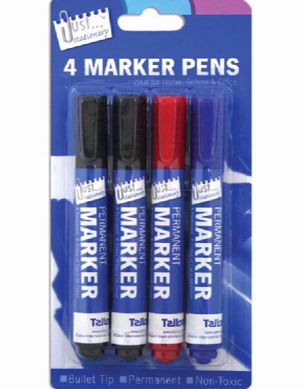 4 stk Svart, Röd och Blå Permanenta Tuschpennor med Sned Spets