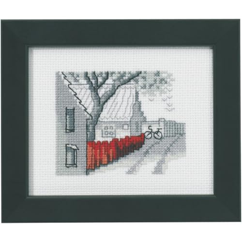 Permin korsstygn broderiförpackning rött staket räkningsmönster