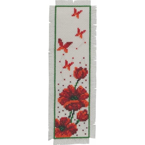 Permin korsstygn broderiförpackning bokmärke vallmoblommor räkningsmönster