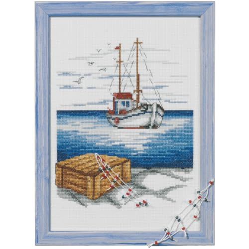 Permin korsstygn broderiförpackning segelbåt/mole räkningsmönster