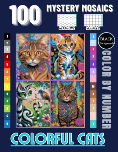 Mystery Mosaic Cats: Color by Number Pixel Art for Adults and Teens: 100 Stunning Cat Designs Featuring Persian, Calico, Siamese, Bengal, Maine Coon, ... Color by Number Pixel Art Book for Cat Lovers