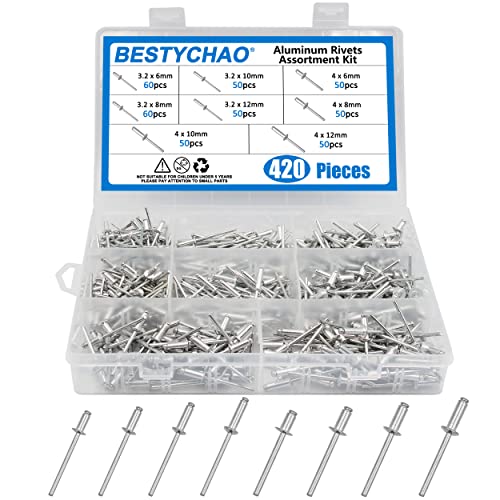 BESTYCHAO 420 st 8 storlekar aluminium persienner nitar, 3,2 mm 4 mm pop nitar sortiment kit (silver)