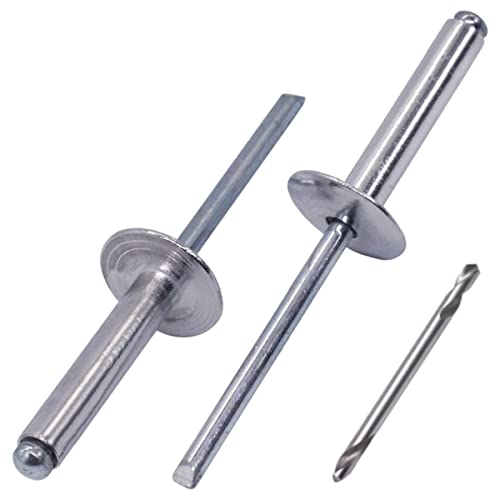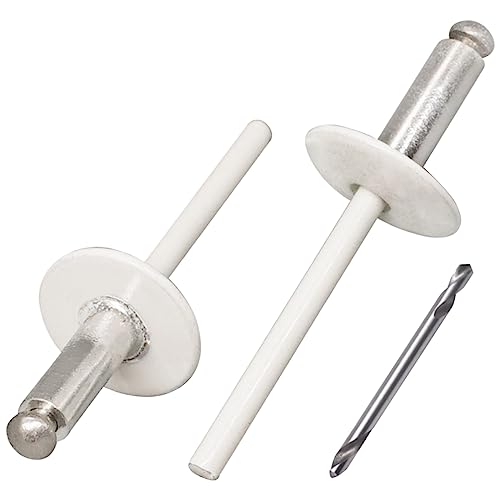 SKIR'CO (100 st) stor fläns aluminium persienner nitar 4,8 x 16 mm, dorn i rostfritt stål, RAL 9010 ren vit (borr ingår)