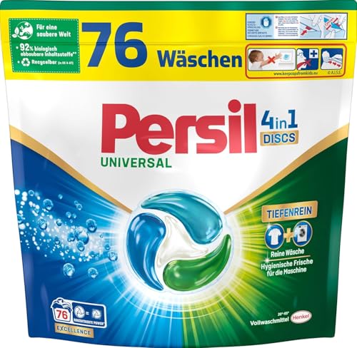 Persil Universal 4-i-1 DISCS 76 tvättlaster, universellt tvättmedel med djuprengöringsteknik, fulltvättmedel för ren tvätt och hygienisk friskhet för maskinen