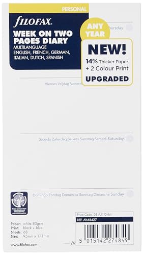 Filofax personlig vecka per sida med anteckningar 5 språk 2024 dagbok, vit