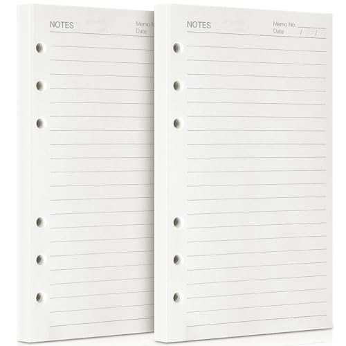 Vicloon A5 löst lövstansat papper, 90 sidor horisontellt linje, påfyllningspapper, planeringsinsatser för 6 hålpärm lösa bladpapper för personlig organisering, dagbok, anteckningsbok, påfyllningsbar