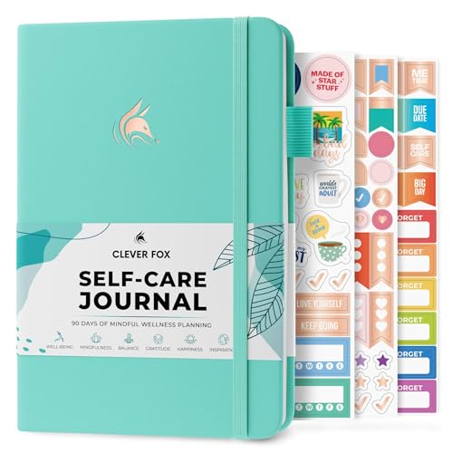 Clever Fox Självvårdande dagbok, välmående och daglig reflektion, anteckningsbok för psykisk hälsa och personlig utveckling, självvård, meditation och humördagbok för kvinnor och män (A5, turkos)