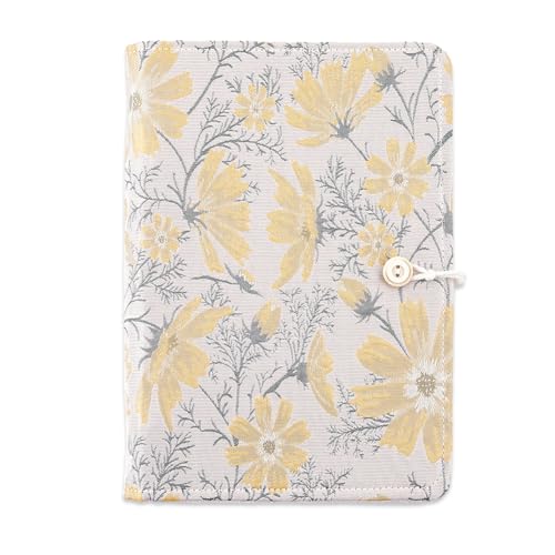 SUPERFINDINGS A5-pärm med 6 ringar, påfyllningsbart blad, mobilblad, personlig dagbok med gul blommig pärmknapp, för A5-agenda, påfyllningsinsatser (utan påfyllning)