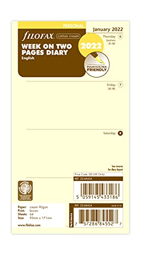 Filofax Personlig vecka på två sidor bomullskräm engelsk 2022 dagbok
