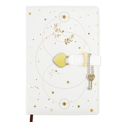 Mlife A5 anteckningsbok hjärthänglåsjournal med nyckeldagbok med 192 sidor, 100 g/m² tjockt papper, hemlig anteckningsbok, personlig dagbok för pojkar och flickor (vit)