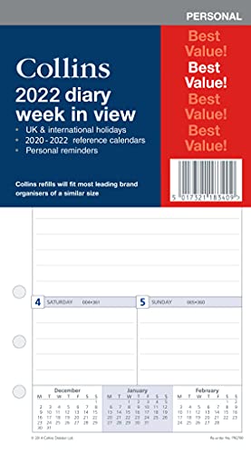 2022 dagbok vecka att se påfyllning för personlig storlek (172 mm x 96 mm) 6 ringarrangör