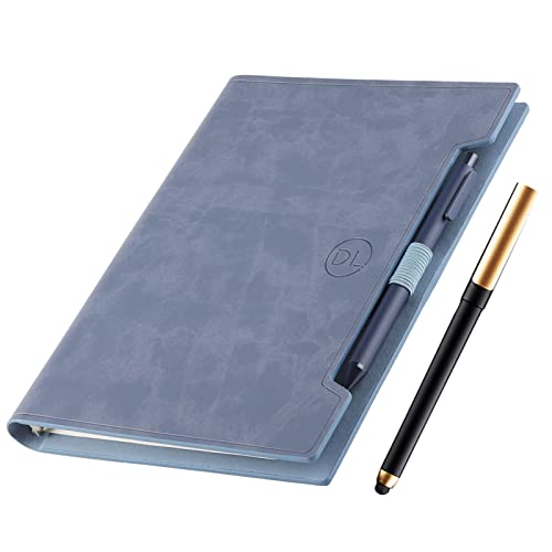 Klassisk läderjournal, påfyllningsbar anteckningsbok, linjerade sidor, personlig dagbok, skrivbok, A5, affärsanteckningsbok med fickor/pennhållare, linjerat papper, 100 gsm, 160 ark/160 sidor (blå)