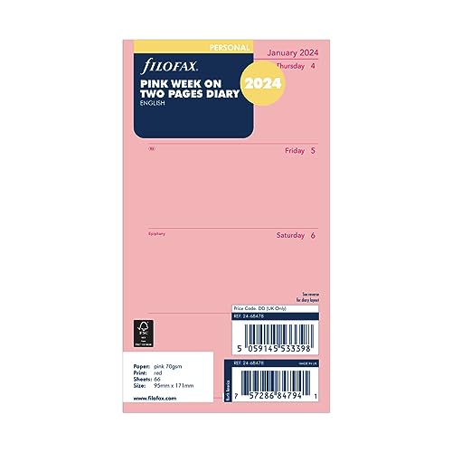 Filofax personlig vecka på två sidor engelsk 2024 dagbok - rosa