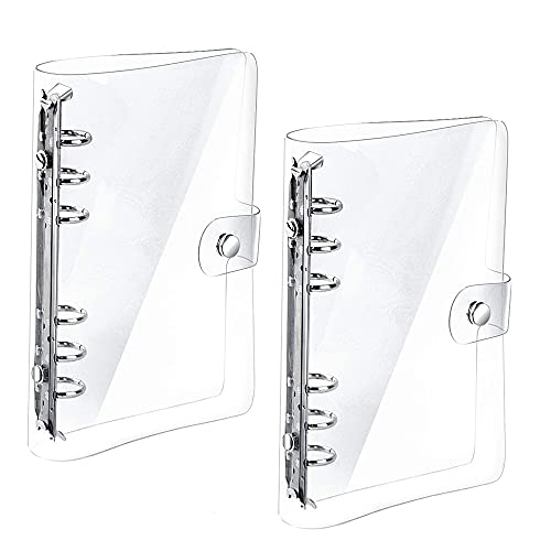 Impatiens 2 stycken A5 ringpärmskydd, påfyllningsbart papper PVC-pärmar, löst blad personlig planerings pärmar, 6 hål, vattentät, transparent, med tryckknapp, för dagbok, kontor, hem, skola