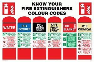 Viking Signs skyltar FZ388-A3L-1M "Känn din brandsläckare etikett färgkoder" skylt, plast, 1 mm halvstyv, 300 mm H x 400 mm B