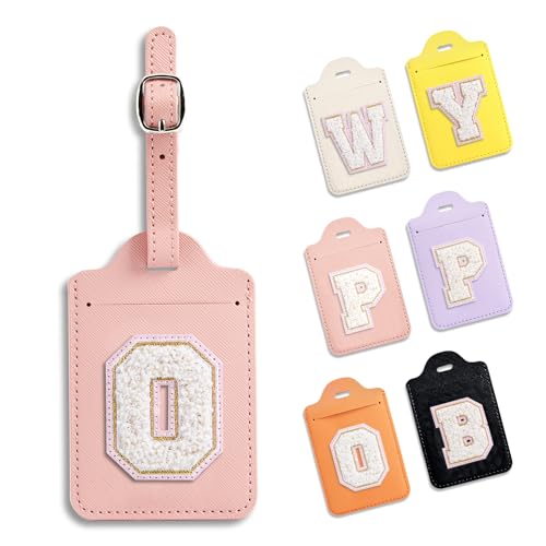 Anntry personlig initial brev bagagetaggar för resväskor, PU-läder bagagelapp med ID-etikett och fullständigt integritetsskydd reseset, tillbehör, resegåvor idealiska för tonårstjejer kvinnor vän