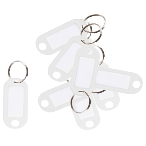 D.RECT – 10 stycken nyckelringar, plastnyckelringar med slingor, nyckelringar med fönster, personlig nyckelring, vit