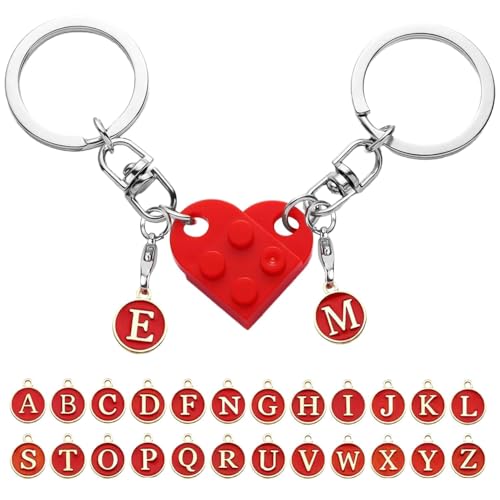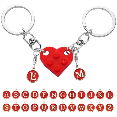 Nyckelring Personlig nyckelring, hjärta Nyckelring Söt nyckelring Personlig tegel som matchar hjärta nyckelring för parvän (röd)