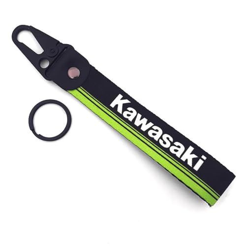 WRFUU Personlig broderad polyester motorcykelnyckelring, motorcykel personlig nyckelring, nyckelring för Kawasaki, svart-A