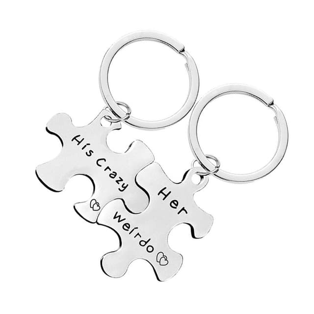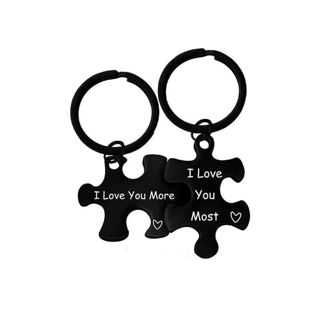Personlig Nyckelring i Rostfritt stål med Pusselhänge Svart