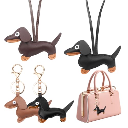 HENGBIRD 4 stycken tax nyckelringar, läder tax hänge väska charm hundväska hänge väskhänge personlig nyckelring tax dekoration för handväska ryggsäck dekoration smycken, Svart, mörkbrun och kaffe, En