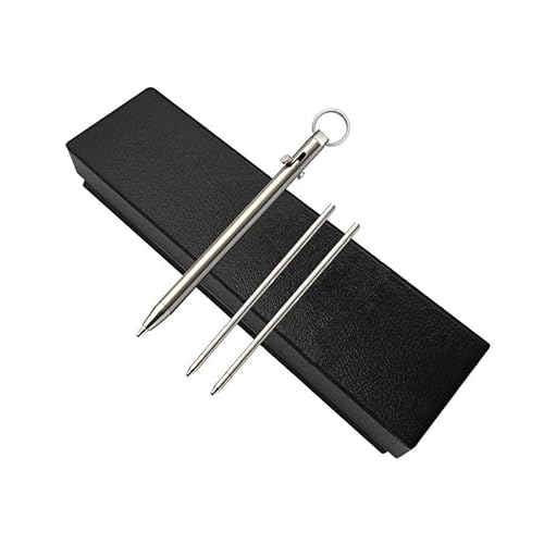 FloraVigo Mini kulspetspenna av ren titan med bultactionfunktion, EDC-penna, metallkulspetspenna med nyckelring och låda, personlig kreativ signaturpenna för arbetet
