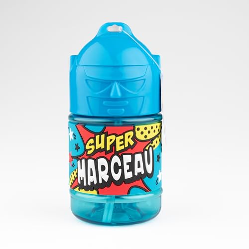 Personlig barnflaska, vattenflaska med sugrör - Super Marceau