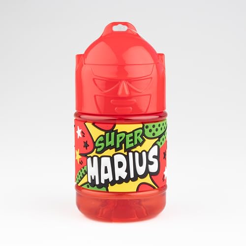 Personlig barnflaska, vattenflaska med sugrör - Super Marius
