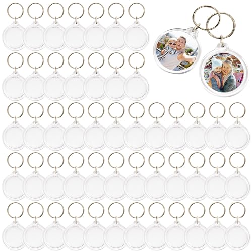 MATANA – klar tom fotoinsats nyckelring tomma nyckelringar, dubbelsidiga för personliga etiketter för presentpåsar, fyllmedel och tjänster – 4,5 cm, Klar, 4.5 cm, 50-pack