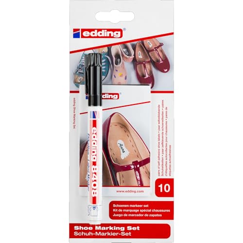 edding 8408 skomarkeringsset – svart – 1 penna och 10 etiketter – rund fjäder 0,75 mm – för märkning av personliga skoetiketter