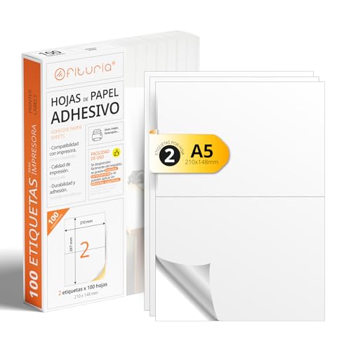 A4-folie med vita självhäftande etiketter, skapa dina personliga klistermärken för alla ytor, säkert självhäftande A4-papper, tryckt självhäftande etikett - Offituria (2 per ark, 100 h)