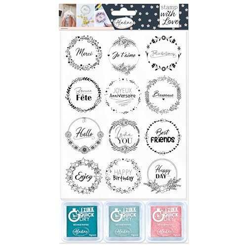 Aladine - stämpel med kärlek kronor uttryck - bräda med 12 skumkuddar + 3 fyllmedel - perfekt kit för personliga presentkort etiketter