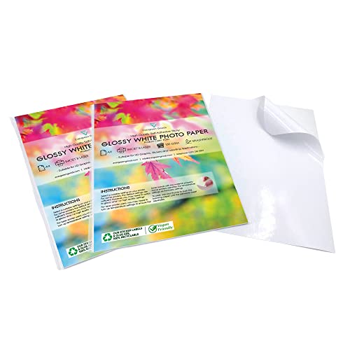 Evergreen Goods A4 vitt glansigt klistermärke fotopapper för personliga klistermärken etiketter, perfekt för hantverkare och småföretagsägare, stänksäker, laser och bläckstråleskrivare kompatibel (100