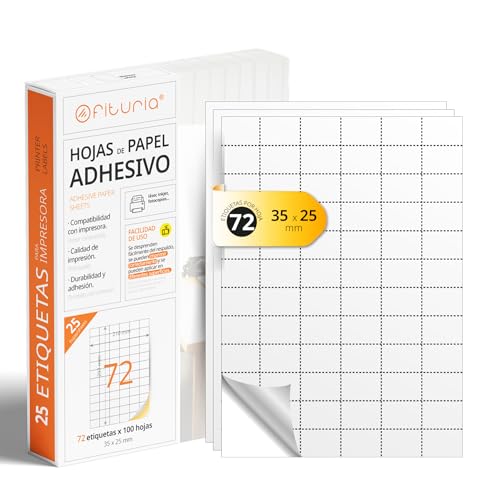 A4-ark med vita självhäftande etiketter, skapa dina personliga klistermärken på alla ytor, A4-papper, självhäftande etiketter att skriva ut - Ofituria (72 per ark, 25 ark)