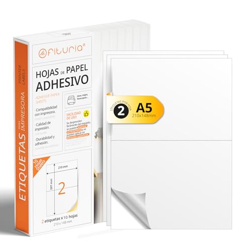 A4-ark med vita självhäftande etiketter, skapa dina personliga klistermärken på alla ytor, A4-papper, självhäftande etiketter att skriva ut - Ofituria (2 per ark, 10 ark)