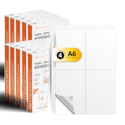 A4-ark med vita självhäftande etiketter, skapa dina personliga klistermärken på alla ytor, A4-papper, självhäftande etiketter att skriva ut - Ofituria (4 per ark, 10 ark)