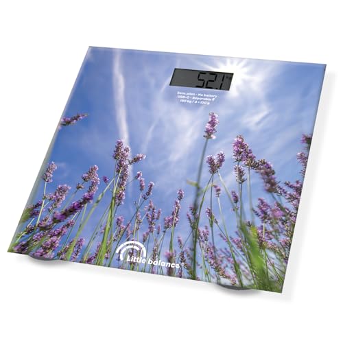 LITTLE BALANCE 8842 lavendel, batterilös personvåg, USB-C, uppladdningsbar, 180 kg, lavendeldesign