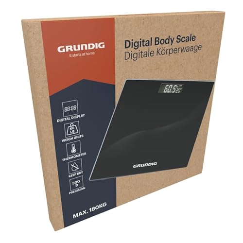 Grundig Digital våg - Personvåg upp till 180 kg - Vågar med LCD-skärm och Temperaturvisning - med kg och Lb-funktion - Automatisk avstängning